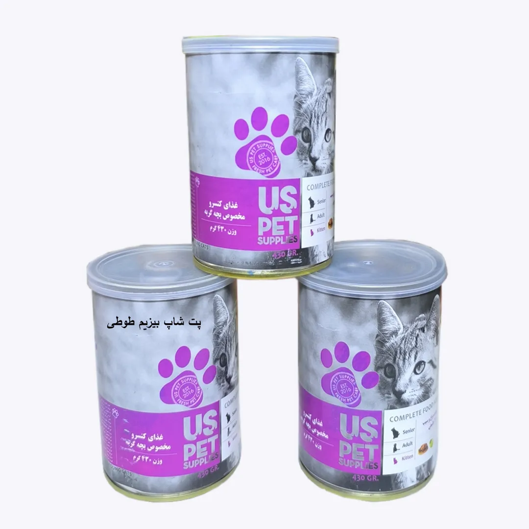 کنسرو مخصوص بچه گربه، حاوی مرغ و سیب، 400 گرمی، یو اس پت